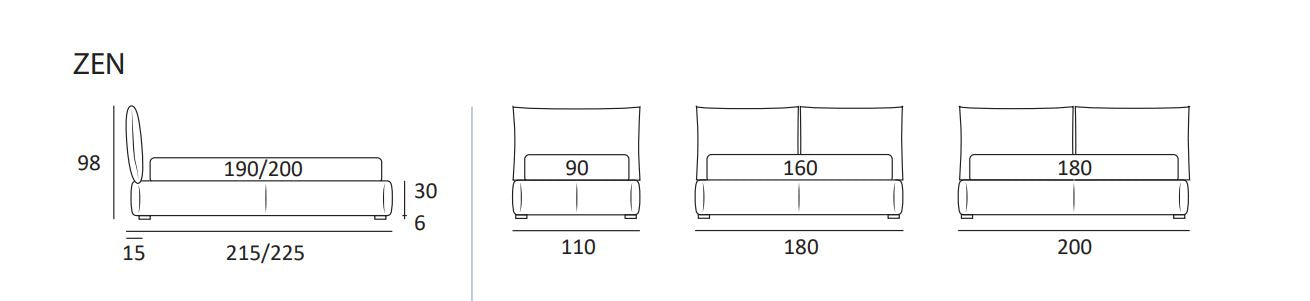 Dimensiuni ext : L.110/180/200 x P.215/225 cm H.36 cu spatar H. 98 cm