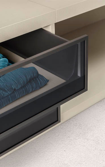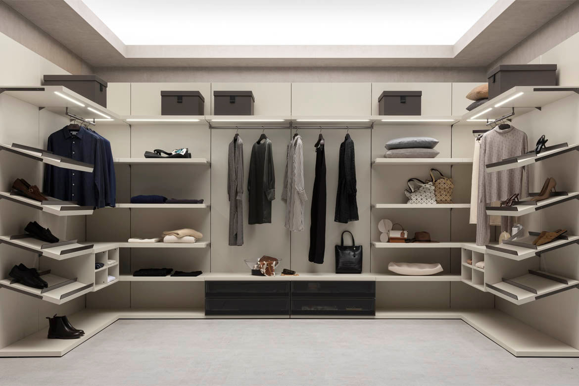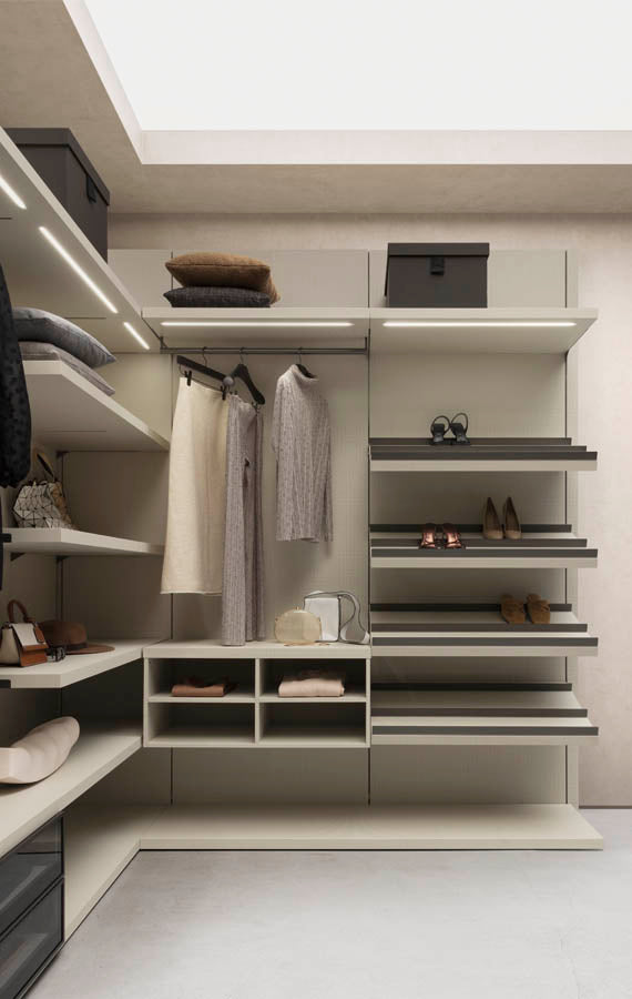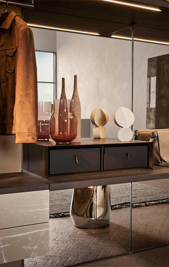 În fiecare zi a vieții noastre – precum și la ocazii speciale – repetăm ritualul de a alege ce haine să purtam și ce pantofi și accesorii să folosim cu ele. Anteprima a fost concepută pentru a însoți și inspira alegerile noastre. Elementele practice, fascinante permit o libertate de aranjare de neegalat si pot fi personalizate intr-o gama larga de finisaje pentru a satisface cele mai exigente solicitari. Disponibilă cu sau fără panouri din spate, structura poate fi completată cu o mulțime de elemente modulare diferite, cum ar fi rafturi, unități de sertare, dulapuri suspendate și umerase.