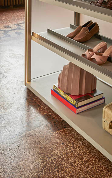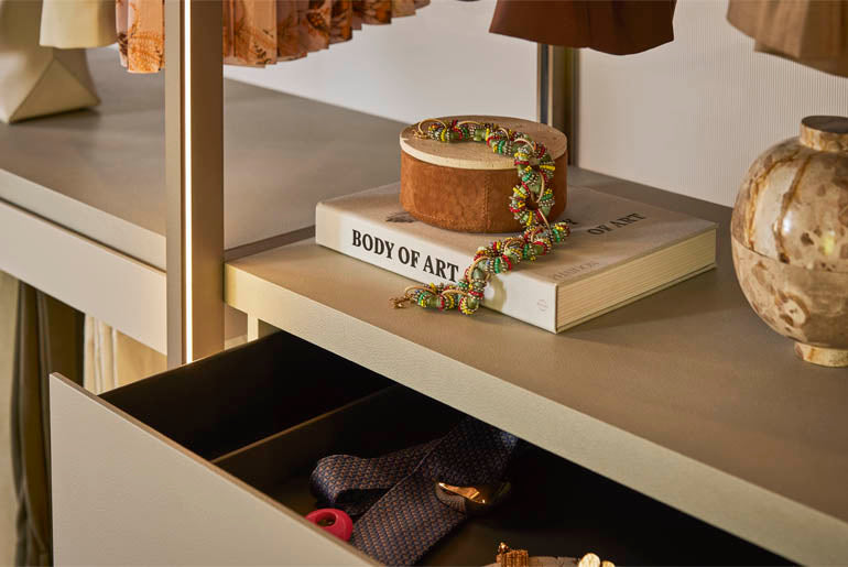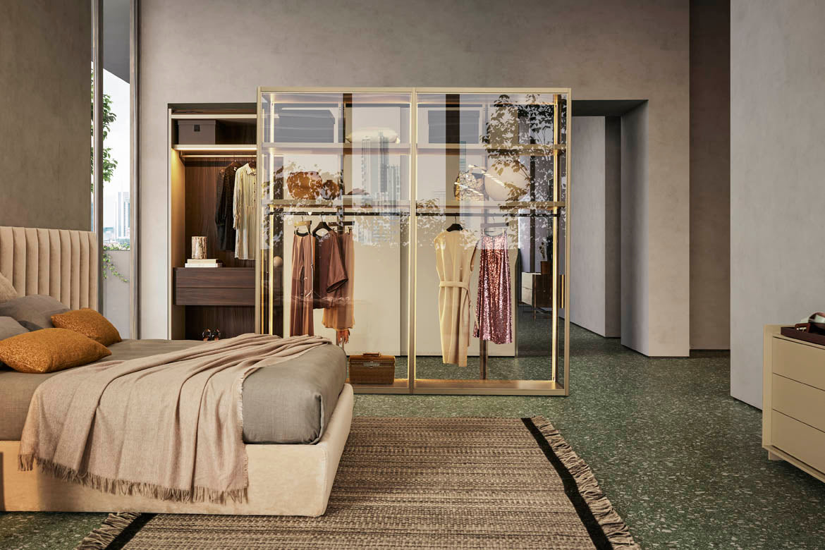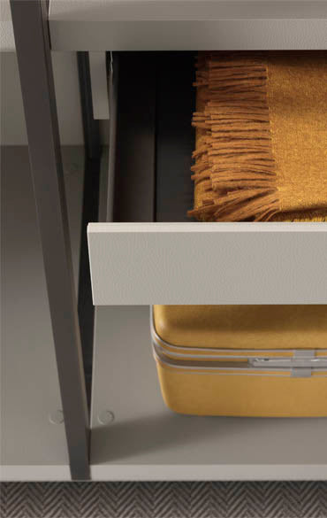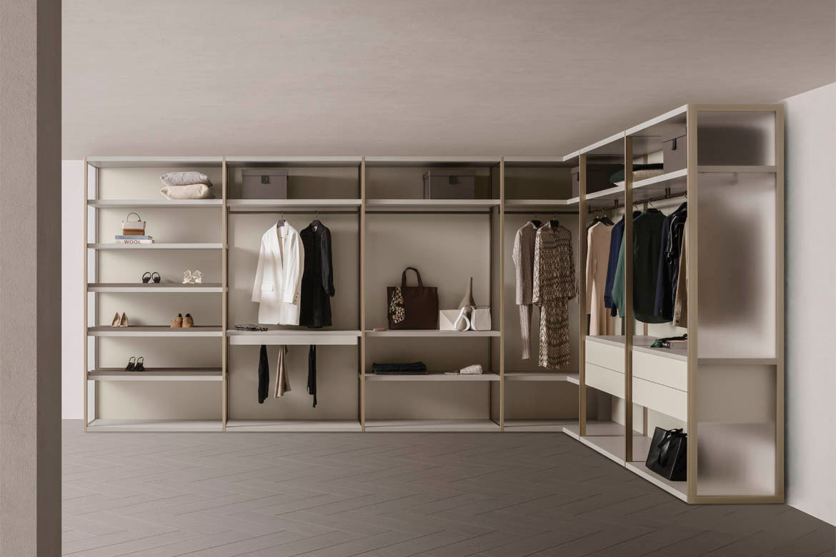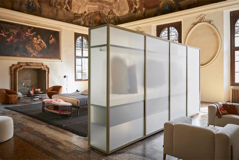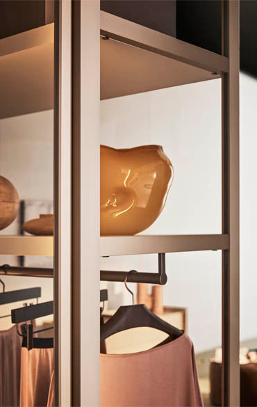 Transparență, ușurință și simplitate. Structura de susținere a acestui dulap adoptă o structură vizibilă, distinctivă și un cadru discret pentru orice conținut, făcându-l perfect pentru orice mediu și stil. Peretele despărțitoare, fără panouri interioare, asigură continuitate vizuală și spațială, subliniind ușurința acestui design. Structura permite instalarea dulapului pe un perete, sau în centrul camerei, făcând din Teatro o insulă cu rol cheie în diferite spații și atmosfere. Opțiunea de a adăuga panouri din spate și laterale oferă o mulțime de spațiu pentru un design personalizat, făcându-l soluția perfectă pentru orice stil.
