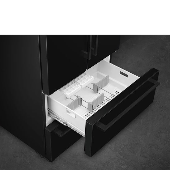 Ventilated: Forced distribution of cold air in the refrigerator compartment, which allows even temperature distribution within the fridge. Smeg Active Ion system improves the quality of the air inside the cell. Thanks to the generation of negatively charged ions released inside the fridge Active Ion system neutralizes unpleasant dust. Natural Plus Blu Light: This unique Natural Plus Blu Light system works with nature to increase the storage time of fruit and vegetables. Air plus: keeps food fresher for longer.