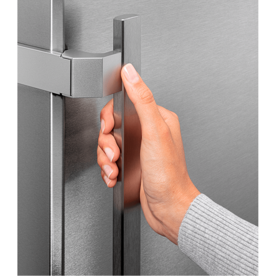 Suprafaţa cu SmartSteel face vizibilă în mod direct calitatea high-end a aparatului dumneavoastră Liebherr, transformându-l într-o autentică piesă de mobilier produsă de un designer. Finisajul orizontal pune perfect în valoare oţelul inox, conferind suprafeţei o strălucire mătăsoasă şi producând o senzaţie plăcută la atingere. Stratul de acoperire antiamprente reduce vizibilitatea amprentelor şi este uşor de curăţat.