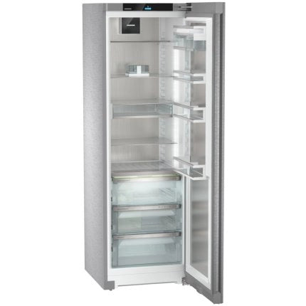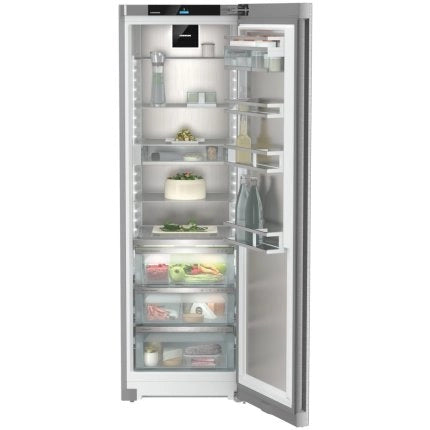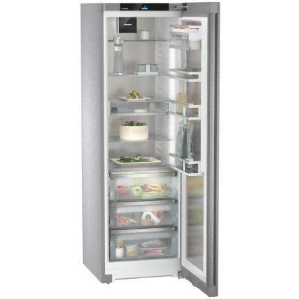 Lumina oferă accente deosebite de Design – chiar şi în frigiderul dumneavoastră: cu iluminarea noastră ambientală. Iluminarea de jur împrejur oferă accente unice în compartimentul interior. Iar împreună cu peretele posterior în Design SmartSteel, precum şi ventilatorul negru foarte lucios se creează un ambient atmosferic.