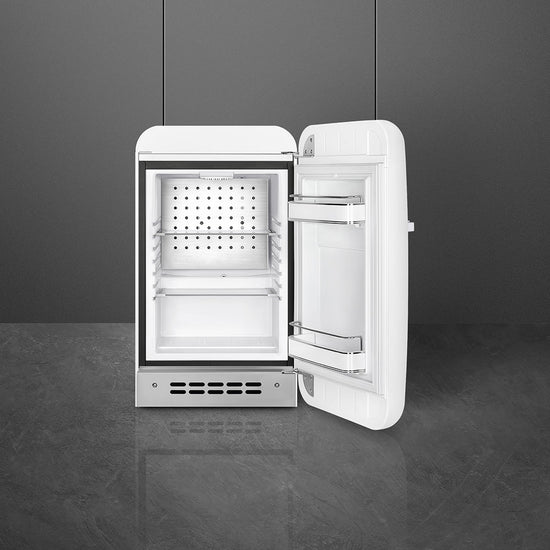 Ceea ce face ca gama FAB de la Smeg să fie atât de interesantă este combinația sa de tehnologie nouă și linii de design nostalgice. Mini-frigiderul FAB5 este cea mai recentă interpretare a acestei filozofii - cel mai tare bar de băuturi și gustări din jur. Funcționează silențios, dacă doriți să îl instalați într-o suită de hotel, un birou, pentru clienți sau într-un dormitor, FAB5 poate merge oriunde datorită opțiunilor sale de dimensiune, stil și culoare.