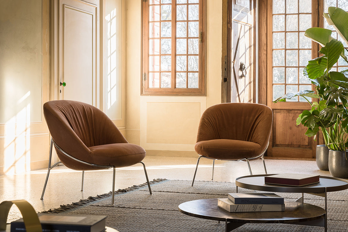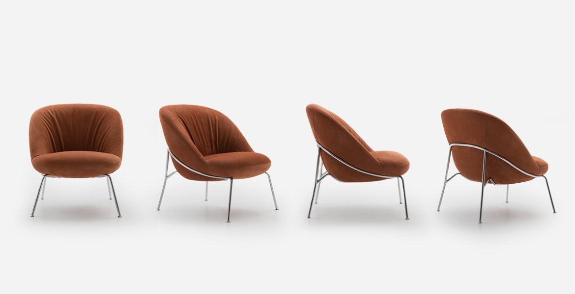 Versatil, elegant, sinuos. Fotoliul Ella este rezultat al cercetărilor formale care vizează echilibrul între stil și funcționalitate: contemporan, rafinat și primitor, este perfect pentru mediile private și publice. Sesiunea și asta spătarul provin dintr-un singur volum căptușit, care este se deschide oferind un suport invaluitor si confortabil. Baza tubulară din oțel îmbrățișează și susține corpul conferind fotoliului lejeritate si dinamism datorita profilelor usoare si curbate. Estetica este impodobita cu detalii delicate, precum bucla liberă de pe spătar și granul grois, care poate fi aleasă în aceeași culoare cu învelișul sau a