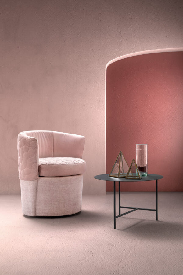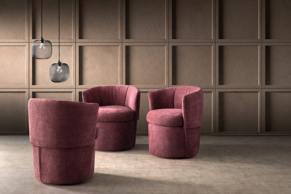 Fotoliu confectionat dintru material catifelat de culoare maro spre orange. Culoarea este diferita de cea din poza.