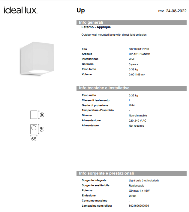 Dimensiuni :L 65 x H 80 x P 95 mm