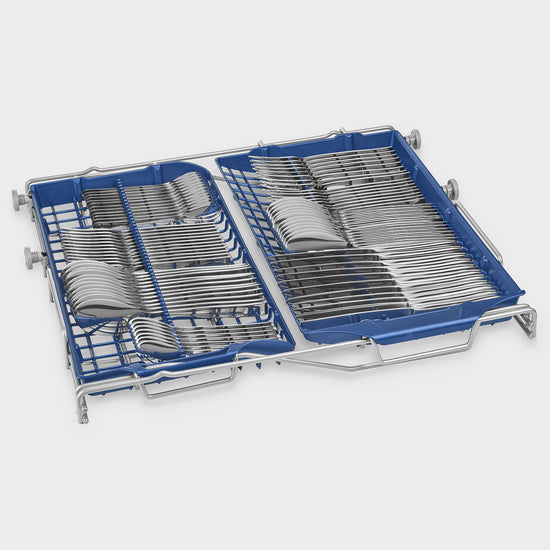 FlexiDuo: The FlexiDuo 3rd cutlery basket allows you to arrange cutlery or small cups, ladles, or bulky utensils however you like: it consists of two separate and moveable modules. The ExtraGlide guides system makes the second basket run even smoother and softer. It facilitates movement even when fully loaded, and thanks to the increased excursion, facilitates the insertion of dishes into the basket. To improve the drying of dishes without leaving stains.