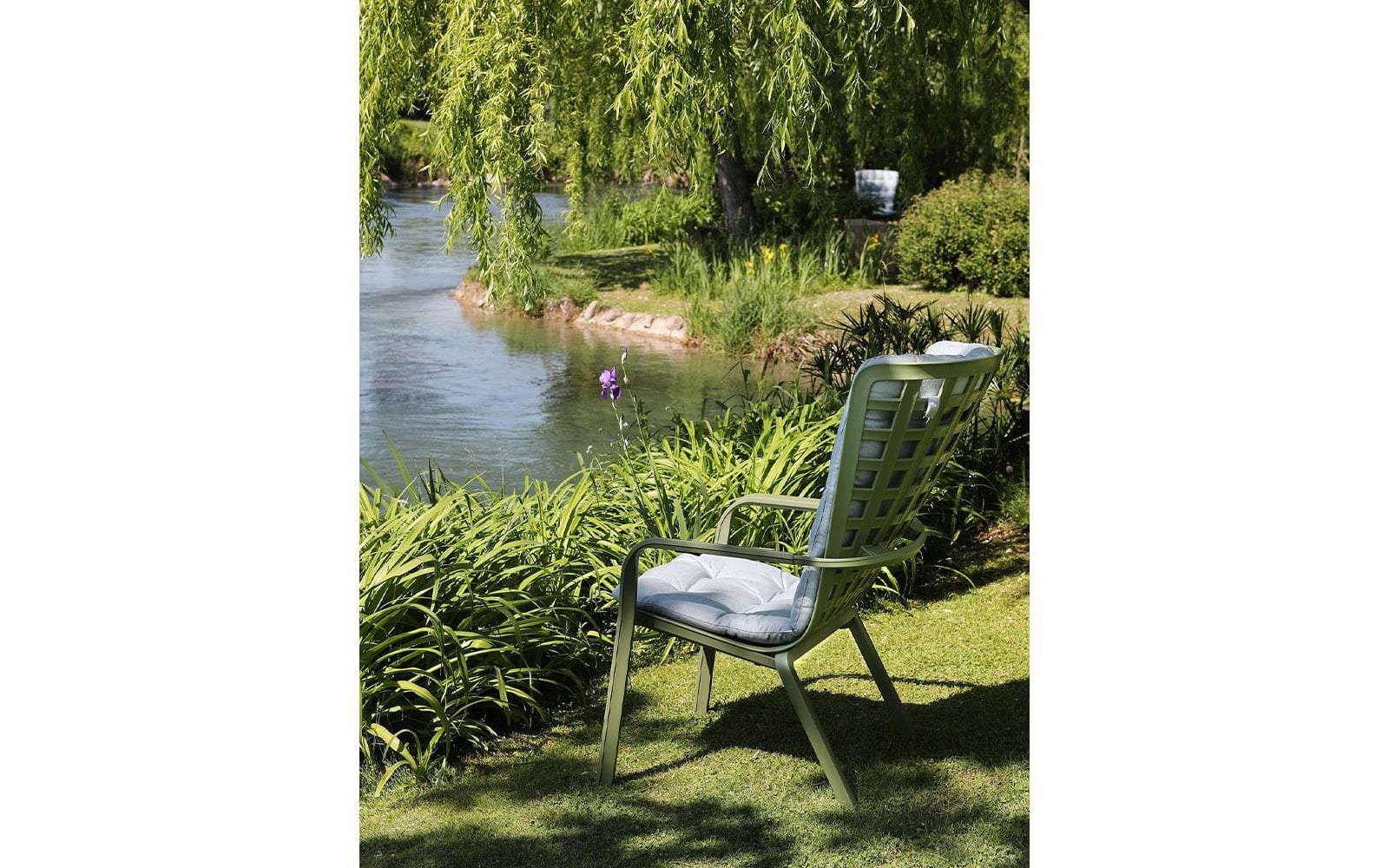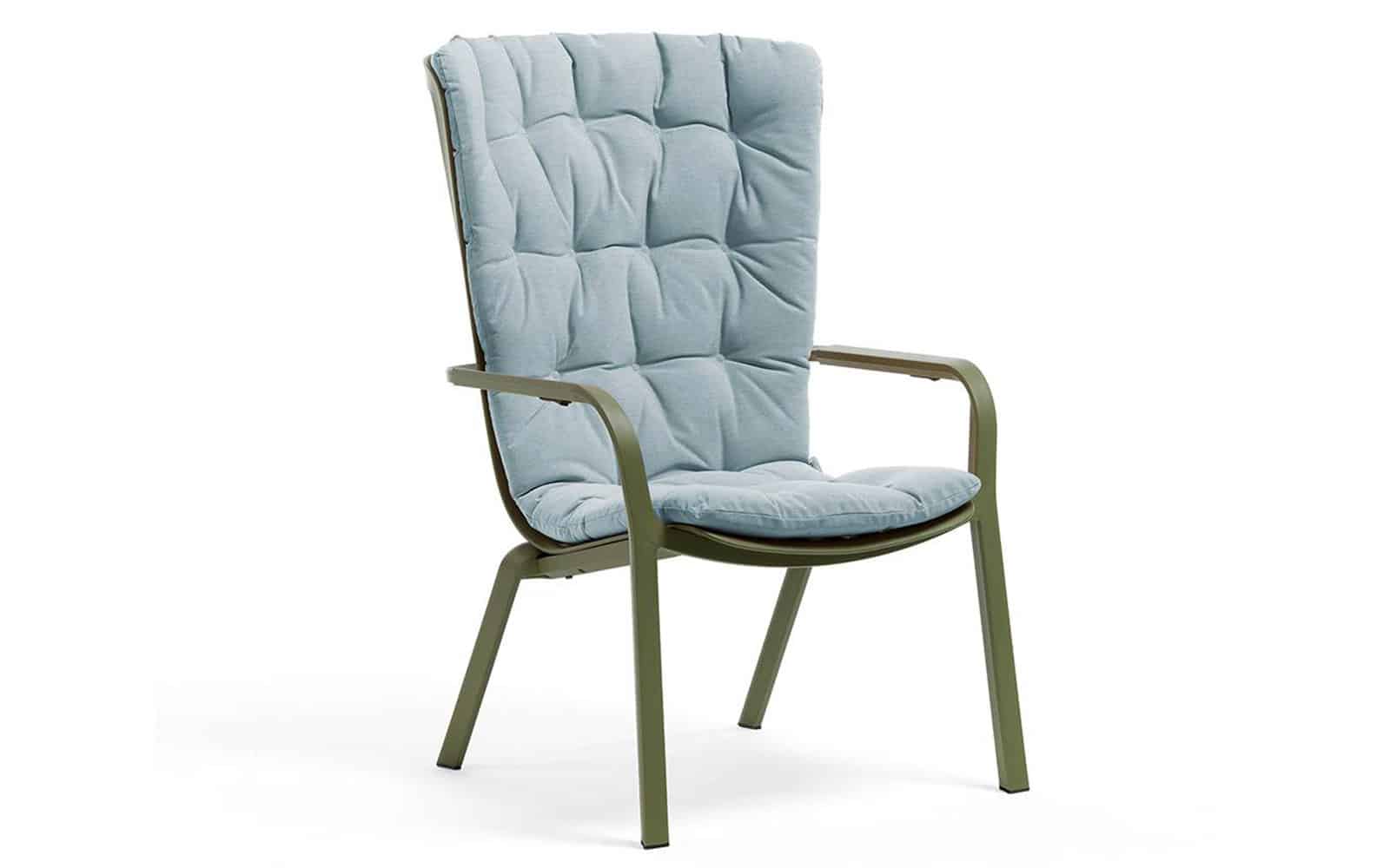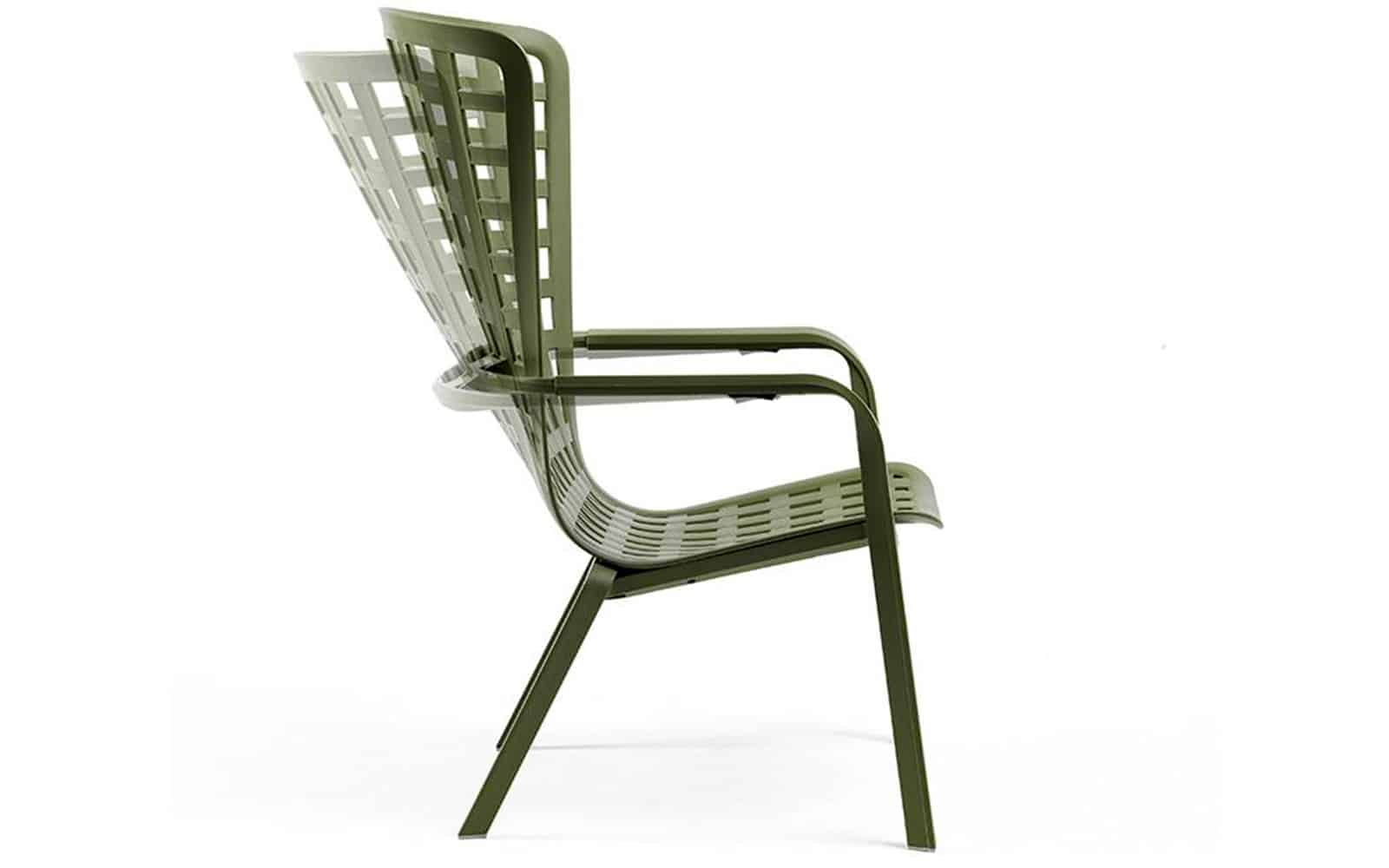 - Folio este un fotoliu de relaxare pentru exterior realizat din rasina fibra de sticla, cu model patrat perforat si finisaj mat. Cu un spătar învăluitor, conectat perfect la scaunul generos, coborât, fotoliul este ca o singură îmbrățișare structurală rafinată, înclinată în două poziții confortabile.