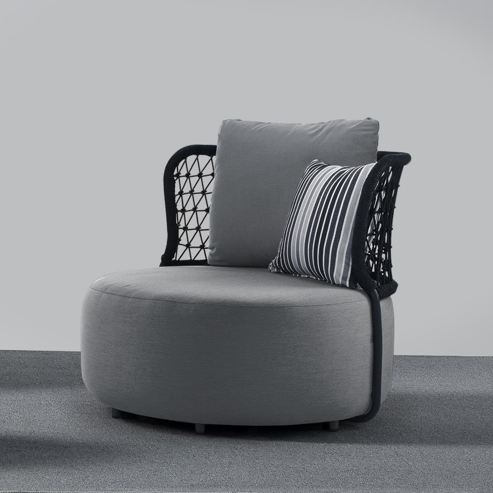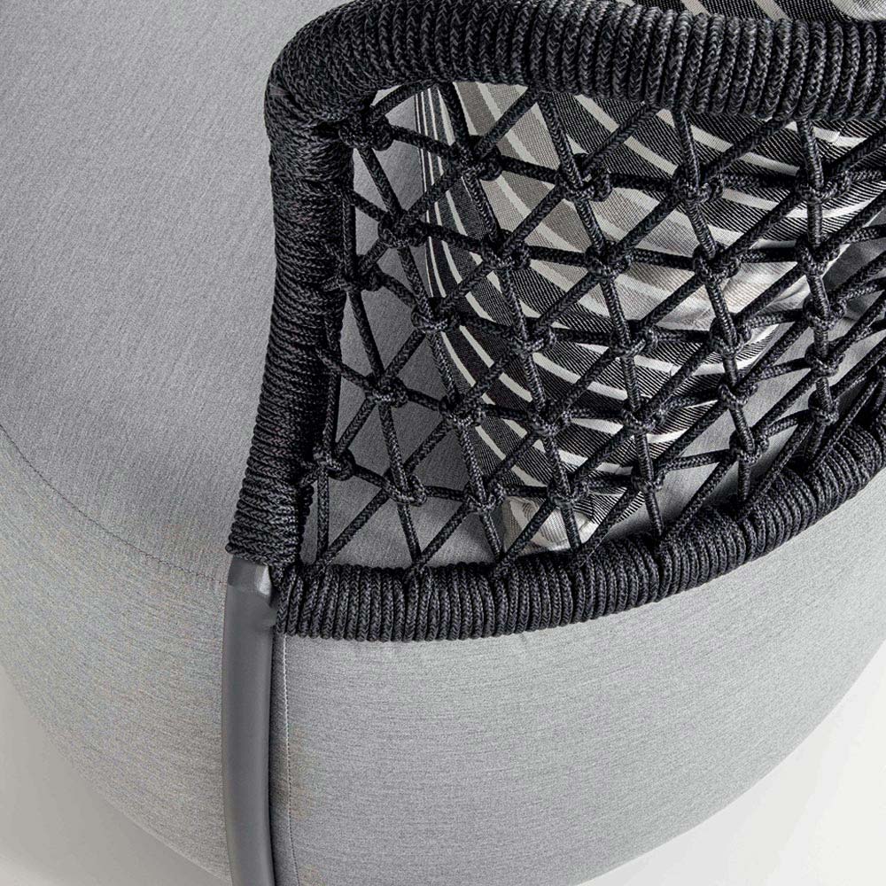Fotoliu pentru exterior cu structura din aluminiu captusita cu material pentru exterior gri.