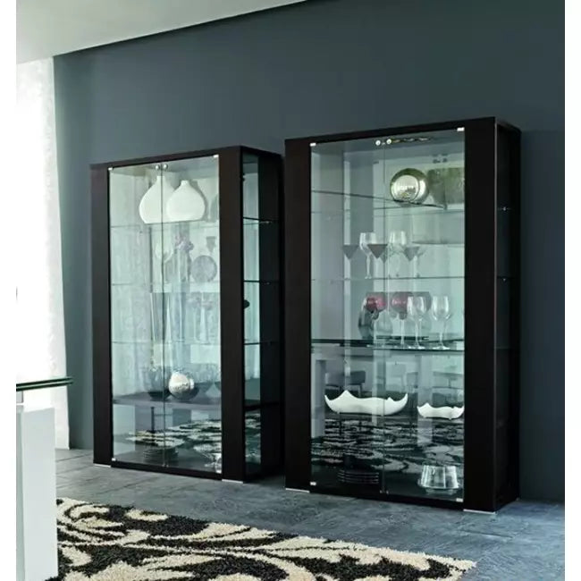 Dulce rigidă, bazată pe contrastul dintre prezența puternică a lemnului și lejeritatea naturală a sticlei, Aurora este atât unică, cât și esențială. Usile, rafturile si spatele sunt transparente, in timp ce flancurile sunt vopsite in alb, nuc Canaletto sau stejar inchis tratat termic. Fiecare obiect din interiorul acestuia va fi perfect iluminat de lumina LED incorporata.