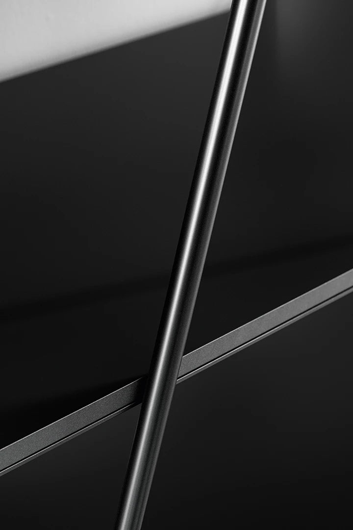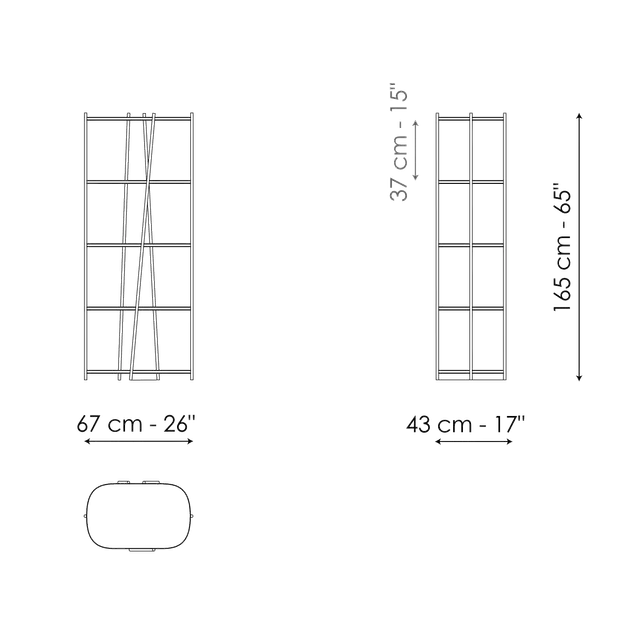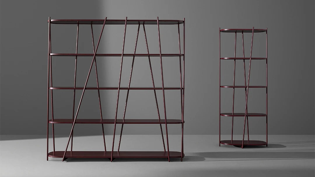 Ordinea este indicată de ritmul obișnuit al rafturilor orizontale din lemn,