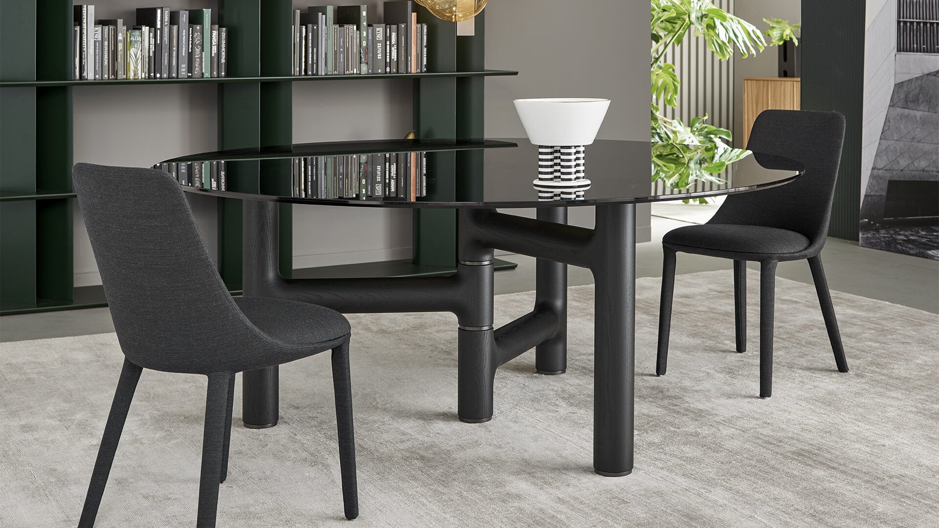 Masa Pivot își ia numele de la forma neobișnuită a bazei: piciorul central actioneaza ca pivot pentru cele trei picioare care se extind în lateral. Rezultatul este un asimetric, o combinație extrem de originala. Picioarele sunt realizate din lemn masiv de stejar carbune sau nuc cu insertii de metal, în timp ce blatul este disponibil în marmură, lemn, sticlă și ceramică, în cele două variante rotunde și cu muchii rotunjite.