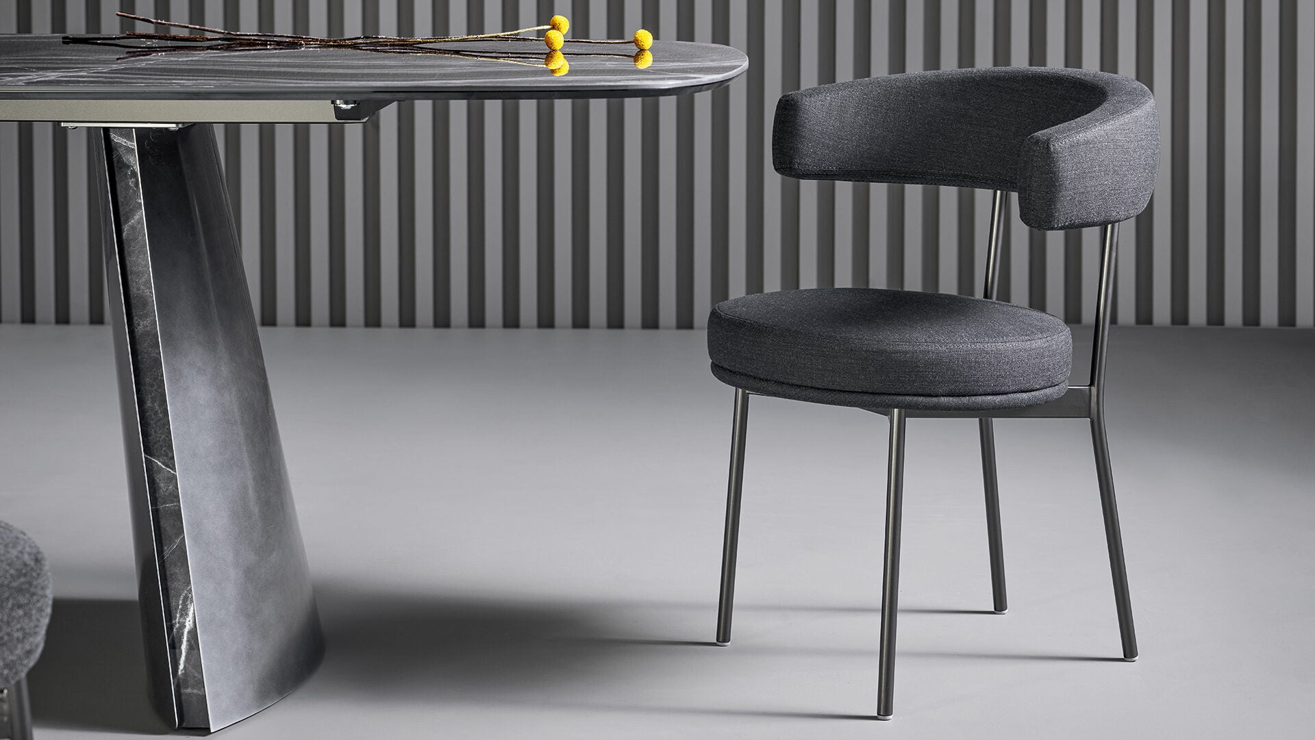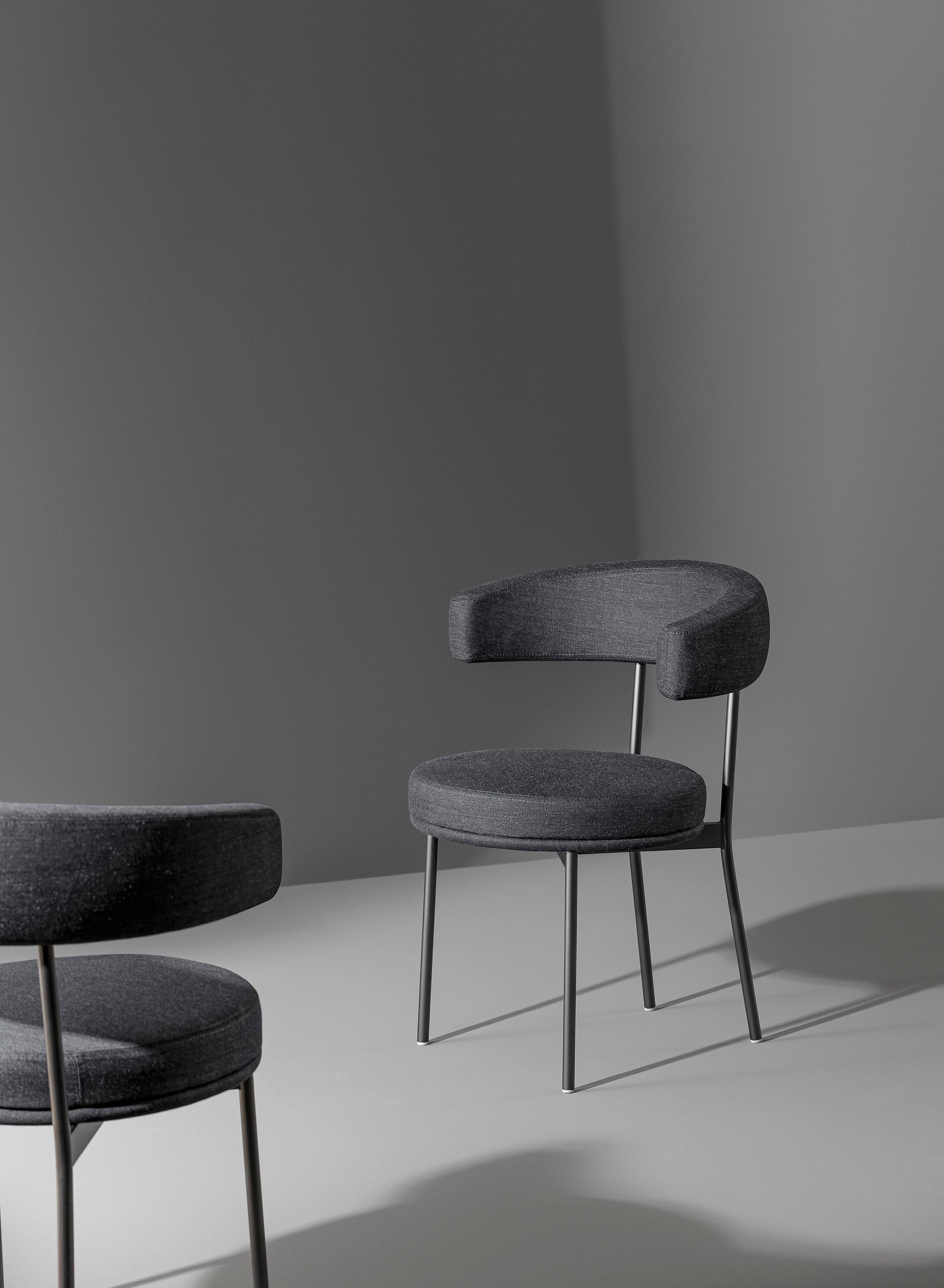 Scaunul Neuilly, proiectat de Fabrice Berrux, prinde viață datorită combinației diferite de elemente clar conturate precum structura subtire tubulara, metalica si elementele tapitate. Scaunul căptușit se joacă cu forma curbilinie primitoare a spatarului, care îmbrățișează corpul cu o singură mișcare ergonomică astfel garantând o postură naturală și oferind neîmpovărat suport pentru brate. Produsul este un scaun caracterizat prin a stil versatil și ușor.