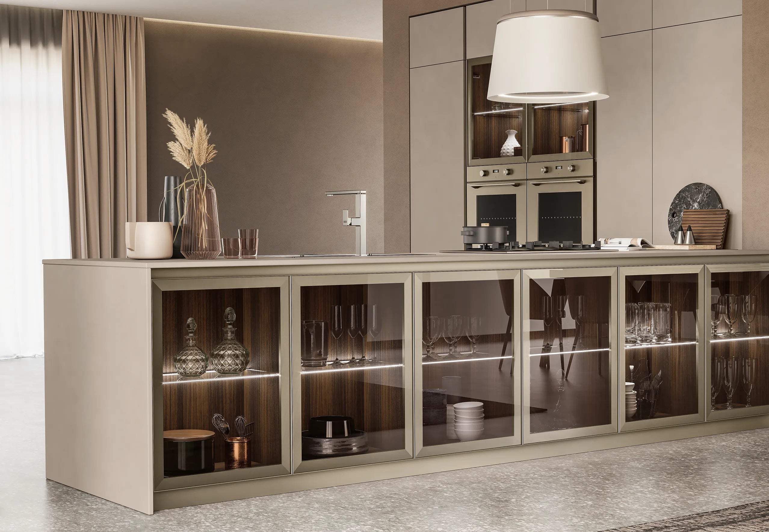 Lungomare, o bucătărie elegantă și rafinată care nu renunță la soluții caracteristice și accente de culoare chibzuite.