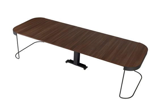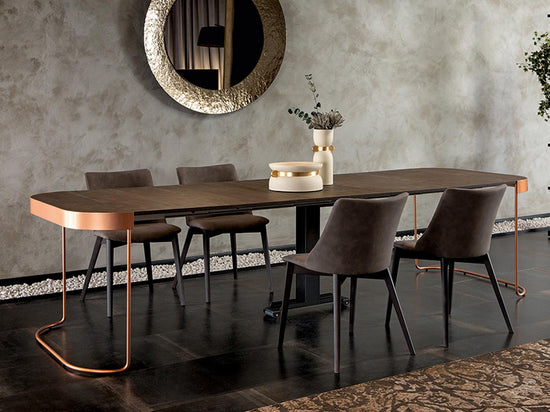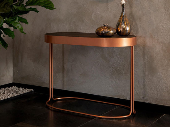 Consola extensibila cu linii pure si delicate si cu baza din otel vopsit.