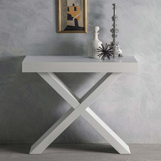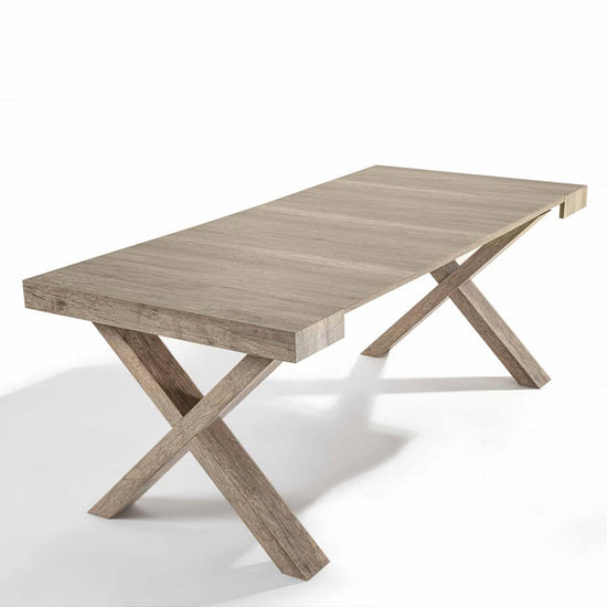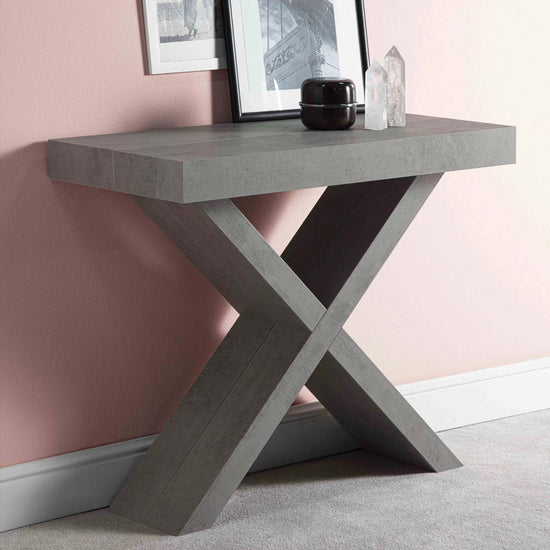 Consola extesibila disponibila in doaua finisaje, ciment si stejar. Poate fi folosita ca masa de dining