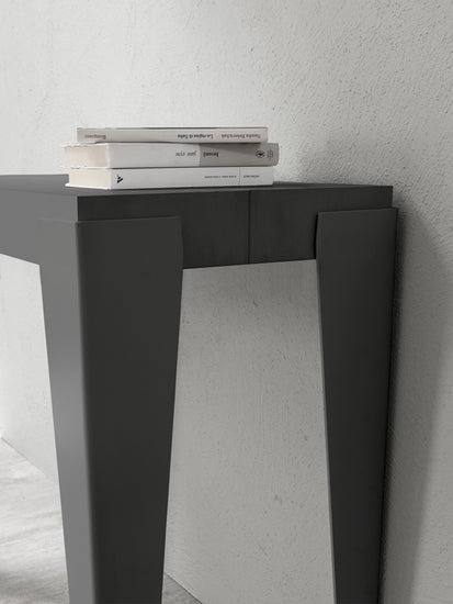 Masa consola extensibila, cu mecanism telescopic din aluminiu, structura, blat si extensii din melaminat, completata cu geanta extensibila.