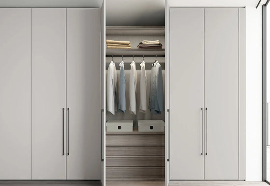 Fiind modular el poate fi adaptat pe dimensiunea dorita si accesorizat dupa preferinte. Putem adauga iluminare cu led, sau alte accesorii pentru depozitare, cum ar fi bari de umerase pentru pantaloni, bari de umerase rabatabile pentru compozitiile mai inalte, sau polite pentru pantofi.