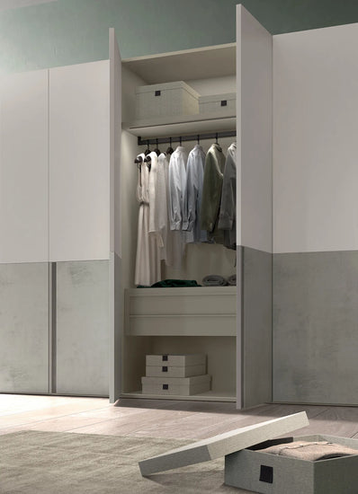 Fiind modular el poate fi adaptat pe dimensiunea dorita si accesorizat dupa preferinte. Putem adauga iluminare cu led, sau alte accesorii pentru depozitare, cum ar fi bari de umerase pentru pantaloni, bari de umerase rabatabile pentru compozitiile mai inalte, sau polite pentru pantofi.
