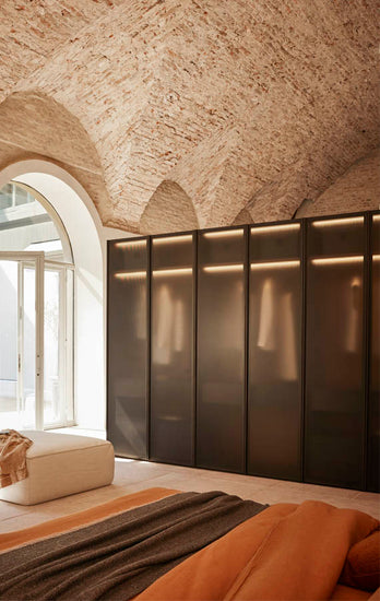 Ca și cum ar fi aranjate într-un butic personal, obiectele și hainele tale trebuie puse în valoare și expuse cu eleganță și ordine. Ușile de sticlă, definite de un cadru Gunmetal Grey sau maro metalizat, pornesc și adaugă o notă de finisare aranjamentelor. Accesoriile interioare vizibile își arată marea capacitate de a organiza eficient spațiile cu stil. Ușile cu balamale sunt prevăzute cu balamale pivotante speciale care se pot deschide la un unghi de 180°.