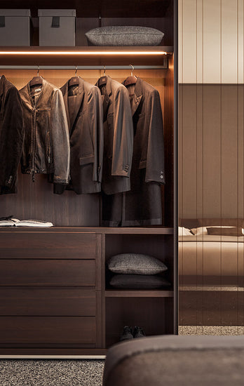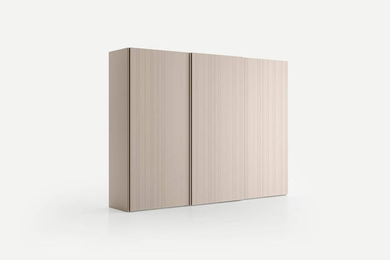 Luxuriante, excentrice și elegante, ornamentele fură spectacolul. Inciziile verticale se desfășoară pe suprafața ușii, alternând ca raze discontinue de lumină care schițează linii dinamice, paralele. Lucioase sau mate, ele înfrumusețează suprafețele din sticlă sau cu oglindă. Mânerele merg pe toată înălțimea marginii interioare a ușii și sunt disponibile într-un finisaj din aluminiu lăcuit sau metalic.