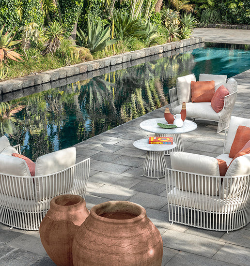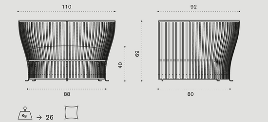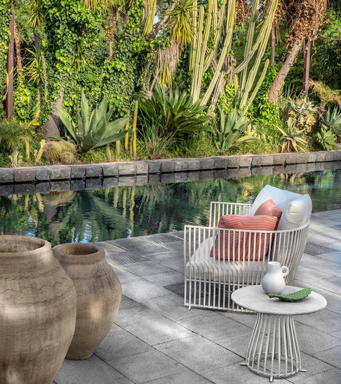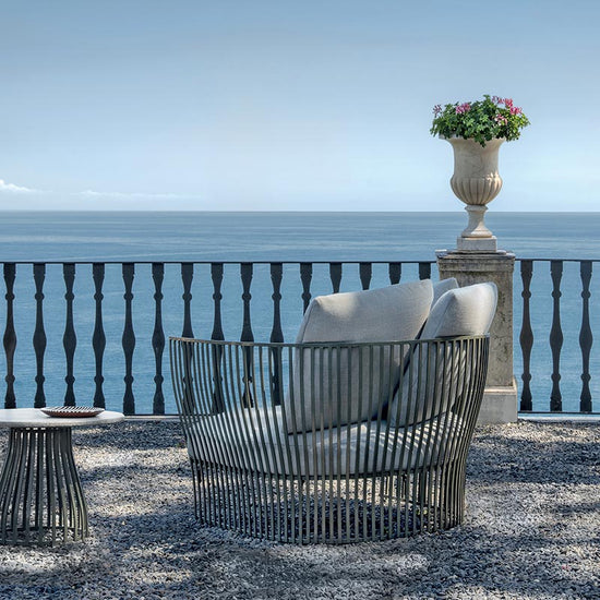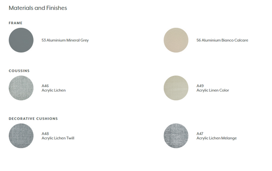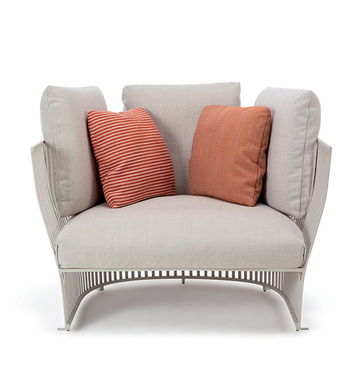 Fotoliu de exterior cu structura din aluminiu vopsita si perne din material acrilic, disponibile in mai multe culori si finasaje.