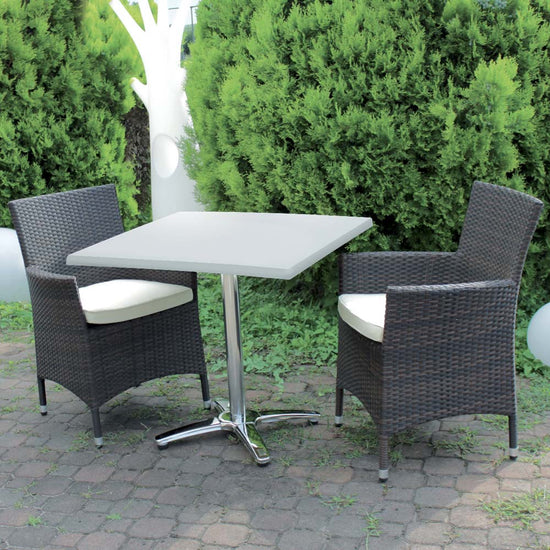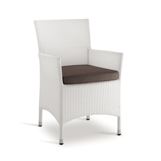 Fotoliu Acapulco cu structura din aluminiu acoperita cu rachita. Disponibil in doua culori, negru si alb.