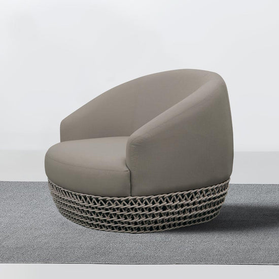 Fotoliu pentru exterior cu structura din aluminiu captusita cu snur de poliester si perne din material pentru exterior.