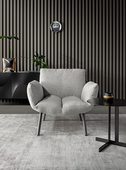 Fotoliul Pil este inspirat de obiectul el însuși un simbol de moliciune, perna: de obicei interpretată ca un accesoriu, aici perna joacă rolul principal, modelată și adaptată pentru a crea un fotoliu care transmite confort și relaxare. Principalele componentele ale lui Pil sunt perna spătarului și șezutul amortizat. Acesta din urmă prezintă un pliu în mijloc, creat pentru a genera un efect învăluitor care fizic și vizual accentuează senzația de moliciune. Baza are picioare vopsite din metal sau cu finisaje elegante.