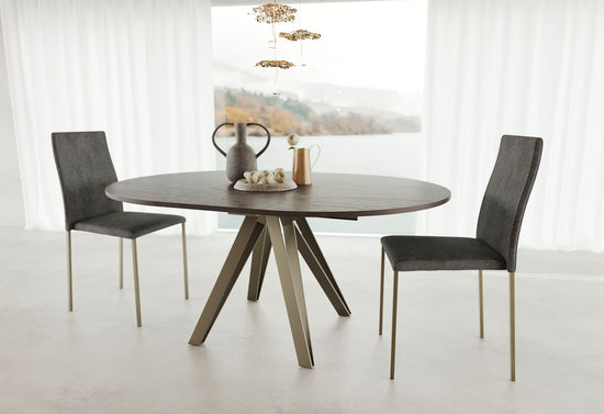 Masa fixa sau extensibila cu baza metalica vopsita si blat disponibil in diferite finisaje si dimensiuni, atat in varianta extensibila cat si in cea fixa.