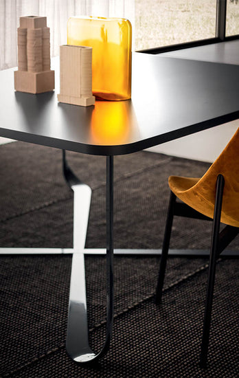 A da formă metalului este vocația stilistică a lui Xavier Lust, lucrul lemnului este a lui Pianca:acestea sunt coordonatele lui Confluence, un tabel cu eleganța dinamică a unei geometrii incirculaţie. Profilele metalice se deschid spre o tridimensionalitate originală și rezistența materialului exprimă o lejeritate sinuoasă, cu o trecere fluidă de la orizontală la verticală. Sustinereaal pianului este gestul final al unui design armonios. In 4 forme geometrice si una lataposibilitate de finisaje, aceasta masa interpreteaza decisiv mediile cu stiluri diferite.