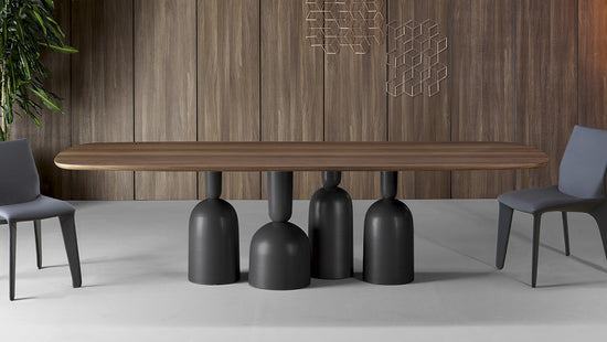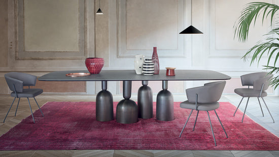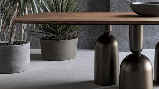 În viața de zi cu zi, mesele sunt în mod normal acoperite cu diverse obiecte dar suprafața mesei Cop este ca o întindere de apă în care obiectele sunt întoarse pentru a-și forma baza neobișnuită. Elemente stilizate inspirate din sticle, potire pretioase si pahare de sampanie, in diverse forme si marimi, chiar și în poziția lor neobișnuită. Vârful este un element neutru, dar, în același timp, este linia de despărțire de lumea pe care o reflectă. Linii flexibile și formale atent cercetate creează o masă menită să aducă oameni și idei împreună. Baza mesei Cop este din metal vopsit, în o singură culoare sau o combinație de diferite nuanțe, sau în finisaje lustruite, alamă mată sau cupru mat. Blatul fix este oferit din lemn, sau ceramică, sau marmură și poate fi rotund sau cu margini rotunjite.
