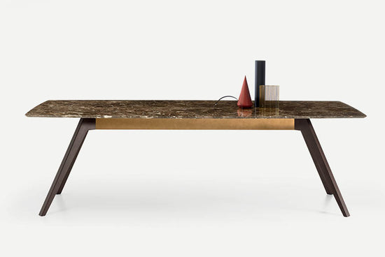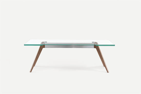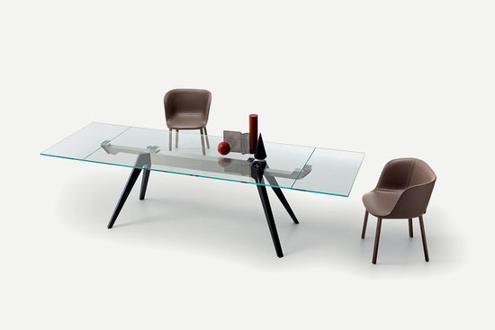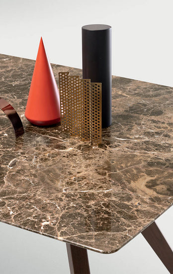 Frumusețea, stabilitatea și eleganța interacționează într-un joc de echilibre și materiale din care se naște Delta. Acolo forma evazata a bazei confera mesei un aspect armonios si usor, performanta in acelasi timp o functie statica care garanteaza structurii stabilitate si soliditate maxima. Gama largă de posibilități dimensionale și materiale ale blatului în culori lăcuite, marmură, sticlă, lemn și in esente exotice, sau in sticla transparenta din varianta extensibila, garanteaza a nivel foarte ridicat de personalizare.