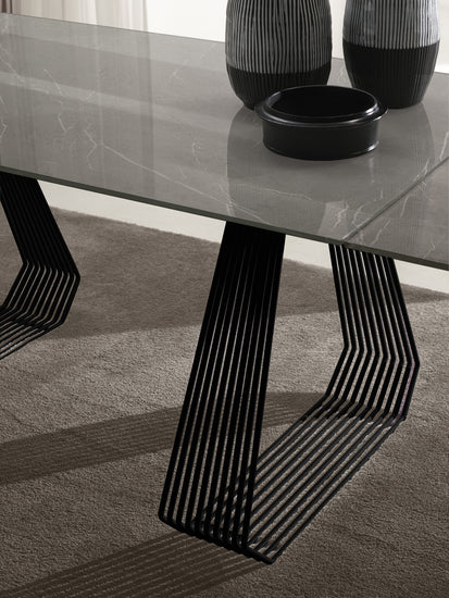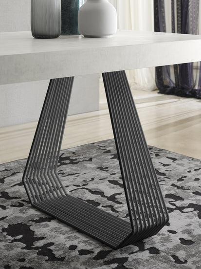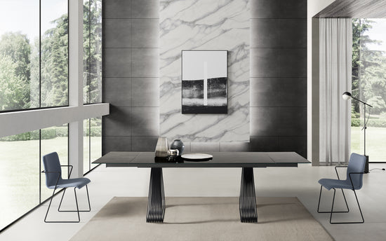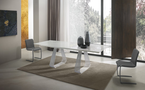 Masa fixa sau extensibila, cu baza metalica vopsita si blat disponibil in diferite finisaje si dimensiuni, atat in varianta extensibila cat si in cea fixa.