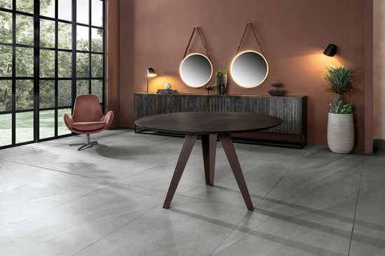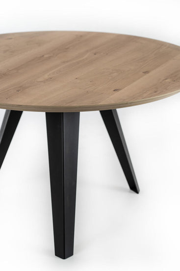 Masa rotunda cu design moder, ideala pentru zona de dining. Elementele furniruite in stejar aduc un sentiment de liniste, o senzatie naturala.