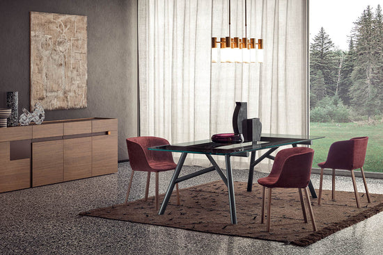 Într-un echilibru perfect între conceptul geometric și stabilitate structurală, masa Maestro stă ca sinteza, dobandind din aceasta valoare estetica confruntare-întâlnire. Segmentul devine întindere care caracterizează proiectul, în timp ce, în ansamblu, conturează un design care amintește de ferme ale ferme arhitecturale. Structura este planificată în esență