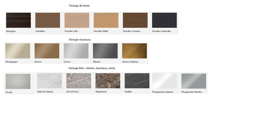 si in metal vopsit, in timp ce pentru blat erau studiați opțiunile din sticlă afumată transparentă și beton.