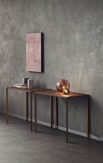 Geometrii liniare, volume esentiale, structura compacta: se remarca prin finisajele sale exceptionale iar pentru disponibilitatea largă a variantelor dimensionale. Personalizarea Mono înseamnă a da formă stilul său și îl fac potrivit pentru orice mediu sau utilizare: plin de viață, neutru, elegant, formal...masă, birou sau consolă. Este realizat integral din metal vopsit in toate culorile de colecție sau în finisaje Corten, Nichel, Coton, îmbrăcat în piele sau piele sintetică.