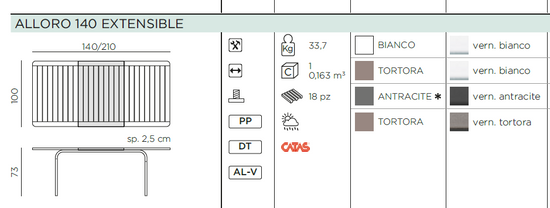 Masa de dining pentru exterior , model extensibil cu structura din aluminiu vopsit si blat din polipropilena.