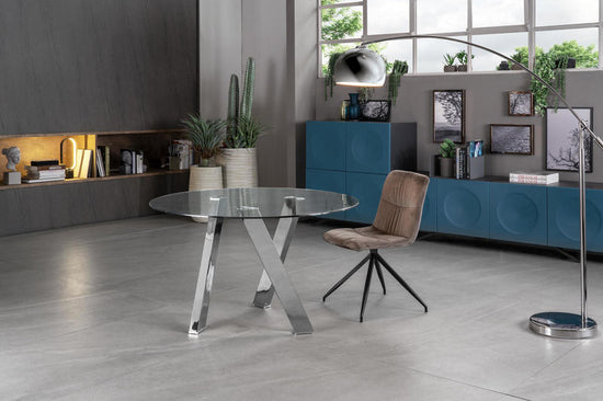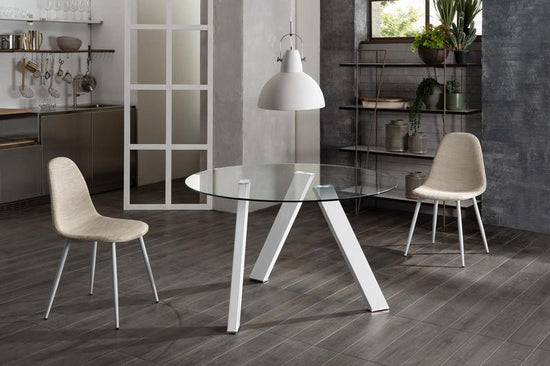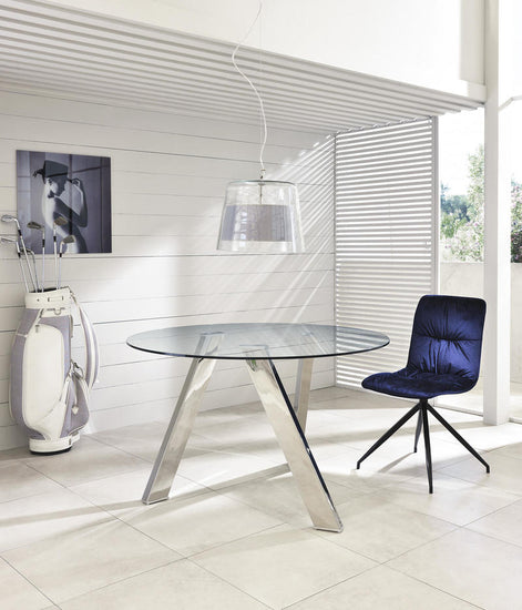 Rondò este masa rotunda de design, perfecta pentru orice spatiu si datorita blatului din sticla ofera lumina si lejeritate incaperii.