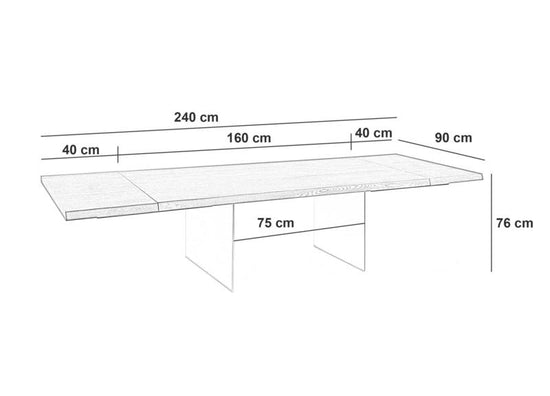 Masa de dining fixa sau extensibila, cu blat furniruit si picioare din sticla.