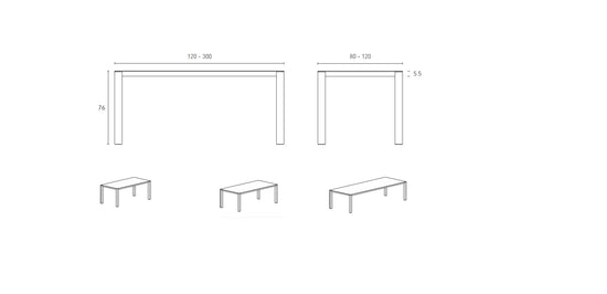 Dimensiuni : L min 120 - L max 300 cm /P min 80 - P max 120 cm /H 76 cm