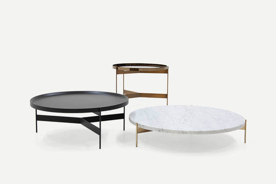 Simplitatea designului său ascunde alegeri geometrice și constructive interesante și bine măsurate care explorează și exploatează tema cercului și a simetriei. Baza este compusă din trei picioare subțiri metalice, legate printr-o structură cu spițe care susține și blatul, care poate fi ridicat pentru a fi folosit ca o tavă la îndemână, separată de structură printr-un simplu gest. Combinațiile de finisaje pentru blat și bază pot fi jucăușe sau elegante, la fel cum combinațiile de mese multiple din seria Abaco pot fi variate și originale.