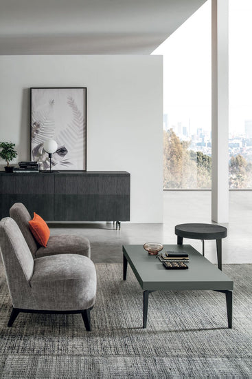 Masă de cafea Atollo cu blat lăcuit mat bazalt (177) și cadru metalic antracit (160).