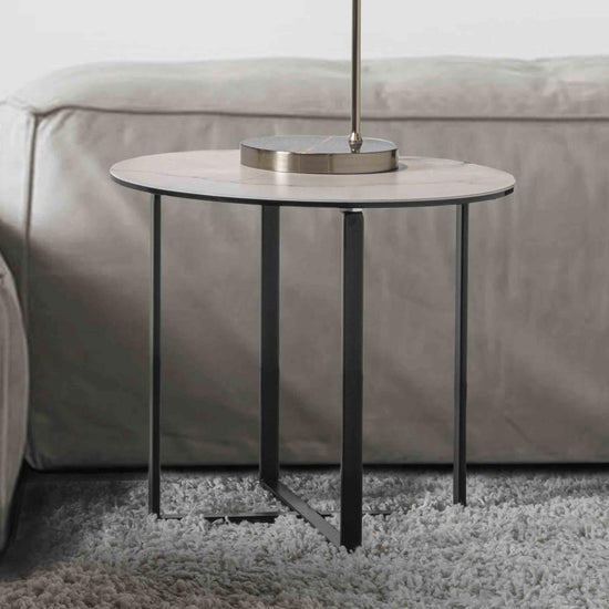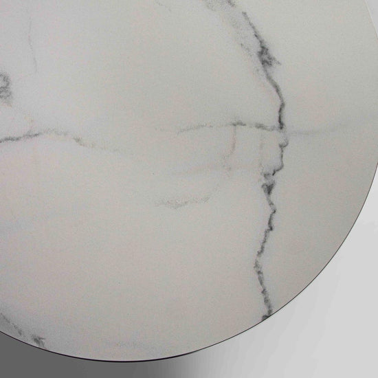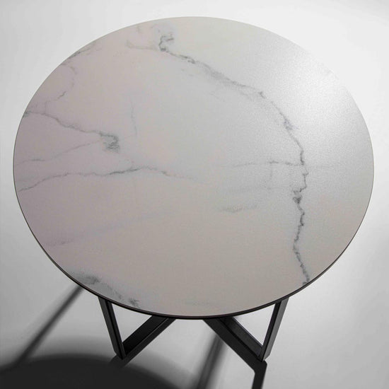 Masuta de cafea cu blat din ceramica si suport metalic vopsit.