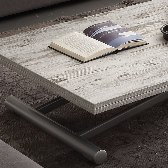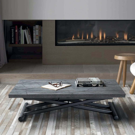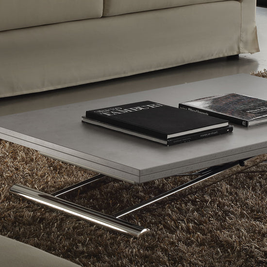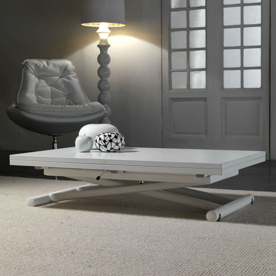 Masuta de cafea cu sistem extensibil, ce poate fi folosita ca masa de dining. Blatul este disponibil in mai multe finisaje la fel ca si picioarele.