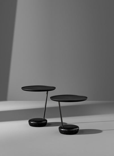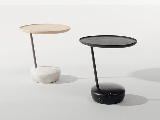 baza impunătoare, corpul elegant și discul care formează masa, subliniat prin asortarea elegantă a diferitelor materiale.