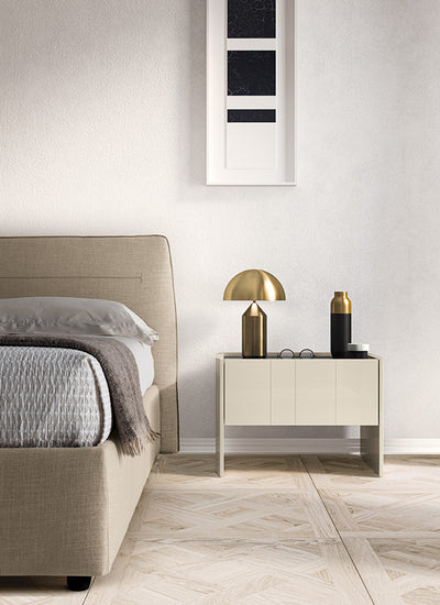 Grup de noapte auriu, echipat cu un frontal de sertar MDF frezat cu distante fixe si predefinite, oferind grupului reprezentarea clasica a colectiei GOLD. Primul frontal al sertarului din partea de sus este întotdeauna echipat cu prelungire parțială și mâner de sus pentru deschidere, în timp ce sertarele din partea inferioară sunt furnizate standard cu prelungire parțială și extensie completă și închidere moale opționale.