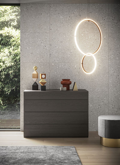 Profilele din aluminiu lăcuite în formă de L pe lateral cu un aspect plat în canelura superioară definind zona de prindere pentru deschiderea sertarelor.