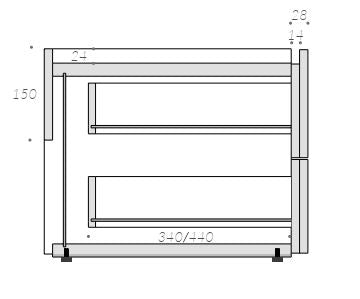 Sertare cu mecanism pentru deschidere cu apăsare echipate cu sistem "soft closing" si extracție totala, precum si ghidaje de inchidere prin sofa.